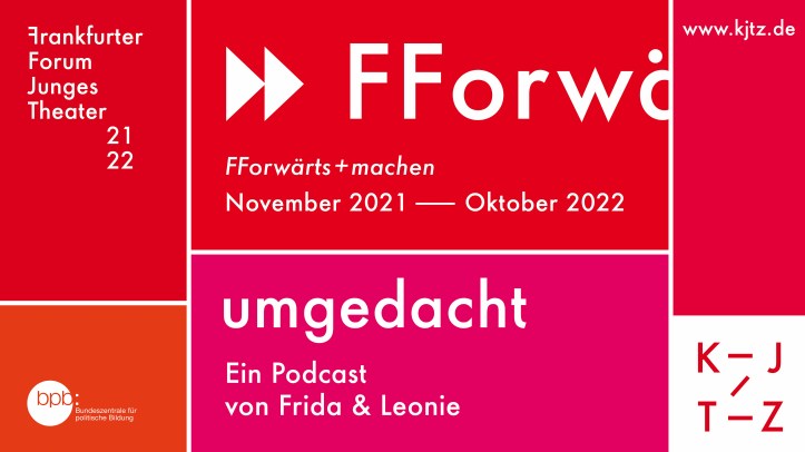 Wie treffen wir Entscheidungen? Worauf haben wir Einfluss? Im Podcast „umgedacht“ sprechen Frida & Leonie mit ihren Gästen darüber, womit sie sich beschäftigen und was sie entscheiden. Die Podcast-Reihe begleitet die Tagung Frankfurter Forum Junges Theater 2021/22 und lädt Menschen zum Gespräch ein, die bei der Tagung mitmachen.