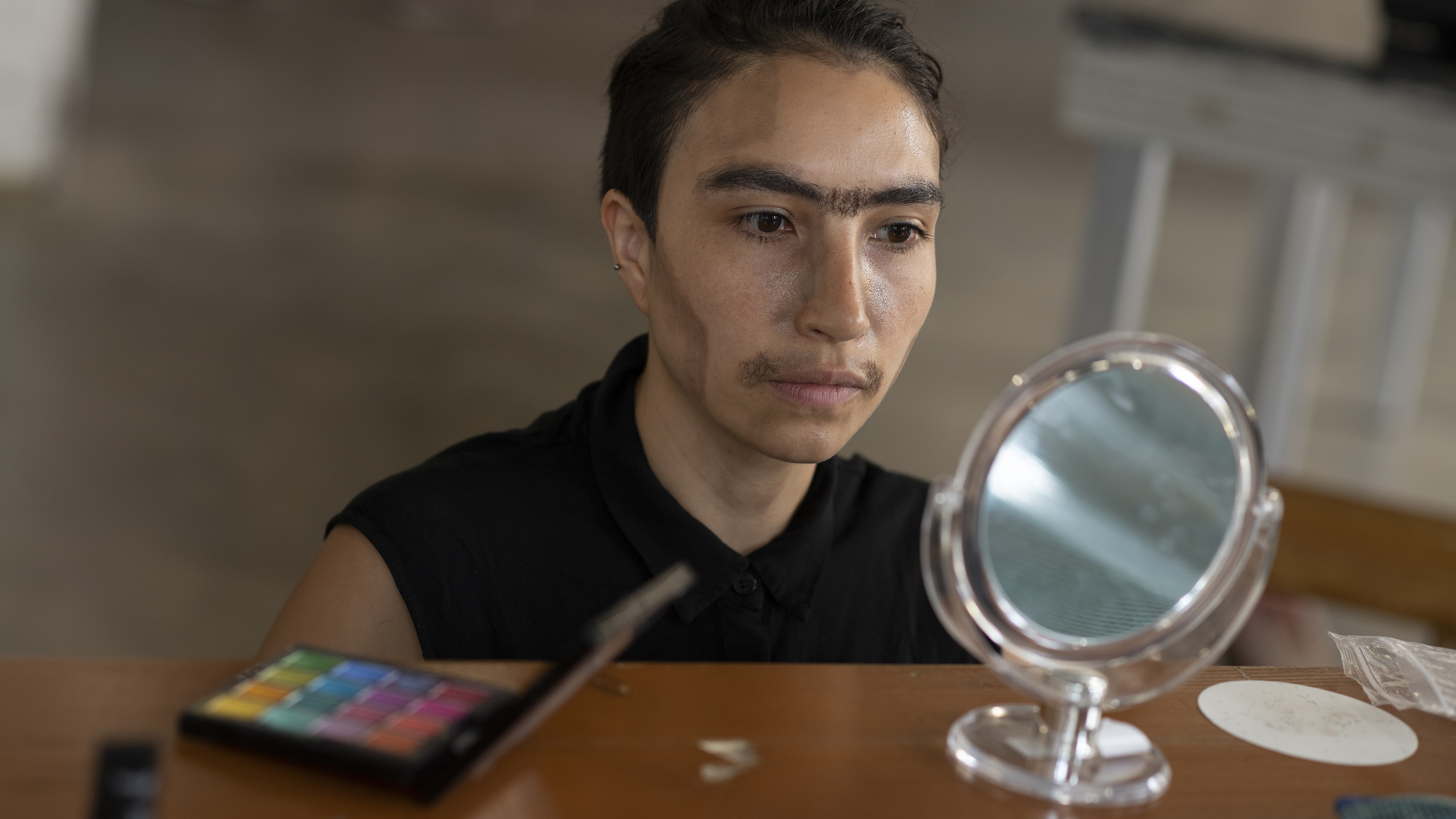Und damit blicken wir zurück auf eine SPURENSUCHE, die sich einem Perspektivwechsel verschrieben und mehr Diversität im Freien Kinder- und Jugendtheater gefordert hat. Das Angebot, das wir hierfür in diesem Jahr geschaffen haben, war, die folgenden Blickwinkel einzunehmen oder speziellen Bedürfnisse zu bedenken: Queere Identitäten. Adultismus und Ableismus. Theater erlebbar gestaltet für taube Menschen. Theater erlebbar gestaltet für blinde Menschen. Und nicht zu vergessen: All das für, von und mit Kindern und Jugendlichen! Um dies nicht nur in intellektueller, sondern auch in ästhetisch wahrnehmbarer Form anzubieten, war Theater X als zweite künstlerische Position geladen. Wir sahen am Mittwochvormittag ihr Gastspiel „ACT OUT! Die Geister, die uns riefen“ – und zwar als Festival-Version mit „shadow interpreting“, einer Echtzeit-Übersetzung in Gebärdensprache, die dank Gudrun Hillert und Christian Pflugfelder auf feinsinnig künstlerische Weise auch die Charaktere der Figuren, atmosphärische Motive und Musik oder andere Bühnengeräusche für unser taubes Publikum transportiert hat. Das Ergebnis war beeindruckend – sowohl für Menschen, die auf die Übersetzung angewiesen sind, wie auch für jene, die zum ersten Mal eine gedolmetschte Theateraufführung (dieser Art) gesehen haben. Zudem hatten die jungen Menschen des Berliner Community Theaters erst am Vorabend nur drei Szenen mit den Dolmetscher*innen geprobt. Zusätzlich waren drei Schauspieler*innen krankheitsbedingt verhindert und mussten als Video eingespielt werden. Doch nicht nur unter Berücksichtigung dieser Umstände, die allen Beteiligten viel Spontanität abverlangt haben, war „ACT OUT!“ eine beeindruckende Darbietung. Im Inszenierungsgespräch bemerkten die meisten den Mut der Jugendlichen, ihre persönlichen Geschichten und Identitäten auf der Bühne zu zeigen und gleichzeitig künstlerisch zu abstrahieren. Das Zusammenlegen der letzten großen Pandemien der Menschheit, HIV- und AIDS-Krise in den 1980ern und die Corona-Pandemie der 2020er Jahre, war ein ebenso bewegender Moment. Letztlich hat es gezeigt, dass sich gesellschaftlich seit den 80ern weder am Gesundheitssystem, an der Stigmatisierung von vermeintlich „Pandemie-verantwortlichen“ Personengruppen noch an der Machtverteilung in Sachen Impfstoff-Verfügbarkeit etwas getan hat. Die inhaltlichen Aspekte hätten wir noch genauso lang weiter diskutieren können wie die theaterpädagogischen, produktionsästhetischen und inszenierungstheoretischen.
