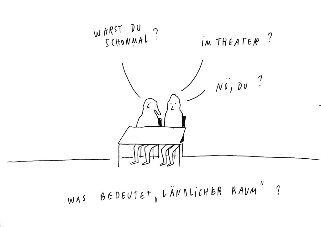 Ländliche und urbane Räume bilden ein gemeinsames Gewebe – das zeigte einmal mehr der digitale Fachtag Im Theater LANDen der ASSITEJ Ende November 2022, den ich als Critical Friend begleitet habe. Etwa siebzig Theaterermöglicher*innen zwischen dem Saarland und Mecklenburg-Vorpommern waren der Einladung der beiden Förderprogramme Wege ins Theater und NEUSTART KULTUR – Junges Publikum gefolgt. Egal ob in kleinen Orten oder Großstädten ansässig engagieren sich die Zugeschalteten für Theatererlebnisse für und mit Kindern und Jugendlichen in ländlichen Räumen – und brachten als Lehrer*innen, Künstler*innen, Verwaltungsexpert*innen und vieles mehr vielfältige Perspektiven und Erfahrungen in den Austausch ein.