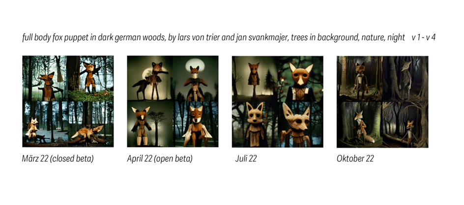 Die Möglichkeiten zur Generierung von Bildern mit Midjourney konnten in der anschließenden Workshopphase mit Nils Voges praktisch erprobt werden. Parallel dazu gab Theresa Schlesinger, Dramaturgin am Theater Bremen, in einem rein digitalen Workshop über ZOOM Einblick in das Schreiben von Theatertexten mit GPT3. Michel Schallenberg, der u.a. Musik für Theaterproduktionen komponiert, zeigte in einem Workshop zu Musik und K.I., wie Open AI Jukebox nach Eingabe von Genre, Künstler*in und Liedtext selbständig neue Musik erstellt. Mit uberdruck AI können verstorbene (englischsprachige) Sänger*innen wieder zum Leben erweckt werden und ChatGPT kann dabei helfen, Inspirationen für eigene Liedtexte zu finden oder Ideen für Akkordfolgen zu generieren.