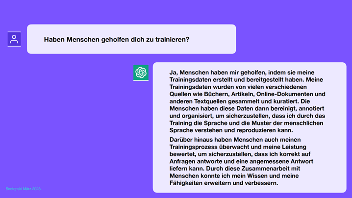 Als Auftakt setzte sich Natalie Sontopski vom Komplexlabor Digitale Kultur an der Hochschule Merseburg unter der Überschrift „Bot or Not?“ mit der Grundfrage auseinander, wie kreativ Künstliche Intelligenz eigentlich ist. Die gängige Science-Fiction-Vorstellung der allwissenden K.I., die alles besser kann als der Mensch, entspricht nicht dem aktuellen Stand der Forschung. K.I.s können nur das, was ihre Algorithmen hergeben, und hierbei sind die menschlichen Fähigkeiten entscheidend, da jegliche K.I. von ihnen entwickelt und trainiert wird. Für ChatGPT nutzen die Entwickler*innen zum Beispiel Texte aus dem Internet, um die K.I. zu trainieren. Damit ChatGPT nicht darin enthaltene rassistische sowie sexistische Inhalte reproduziert, müssen Arbeiter*innen aus Kenia für weniger als 2 Dollar pro Stunde diese Texte aussortieren.