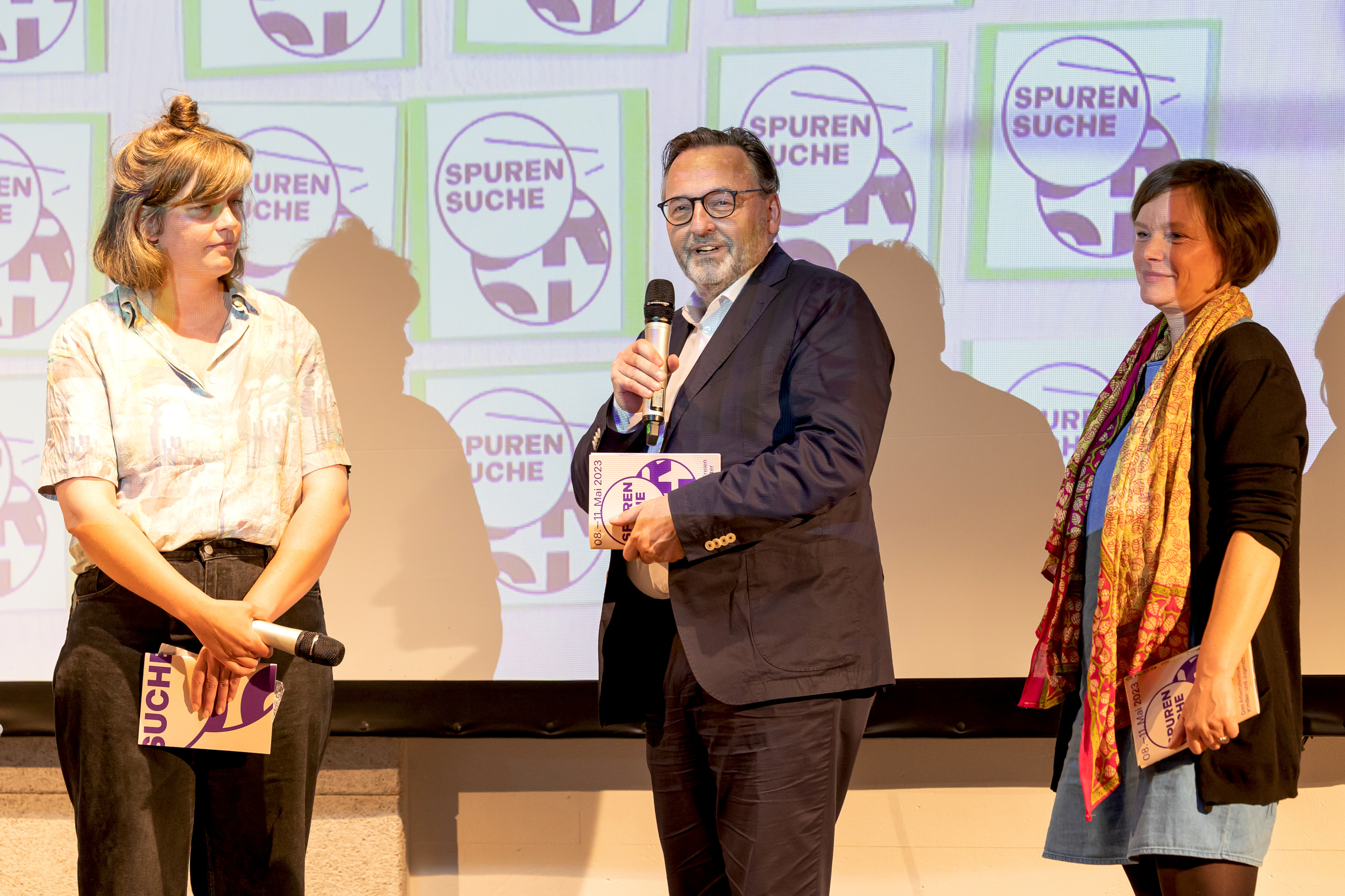 Um einen Überblick über die Themen des Festivals zu geben, haben wir in der Eröffnung Memory gespielt. Das macht Sinn, denn: Zwei, manchmal drei Dinge gehören zusammen und bilden ein Pärchen; beim Spielen (in jeder Hinsicht) entdecken wir Neues, folgen Spuren und müssen auch akzeptieren, dass wir nicht immer alles aufdecken oder finden können, was wir suchen; außerdem geht es ums Erinnern. Immerhin schreiben wir den 8. Mai – und beginnen also mit dem Erinnern an eine Zeit, die niemals vergessen werden darf, damit sie sich nicht wiederholt. Dieses Credo schwingt bei der diesjährigen SPURENSUCHE in vielen Perspektiven mit. Wir beschäftigen uns mit der jüdischen ebenso wie mit der afrikanischen Diaspora. Mit Antisemitismus und Kolonialgeschichte. Mit Rassismen und Diskriminierung. Doch auch das wollen wir aus einer anderen Perspetive tun: empowernd, ermutigend, hoffnungsgebend und voller positiver Vibes in die Zukunft schauen.