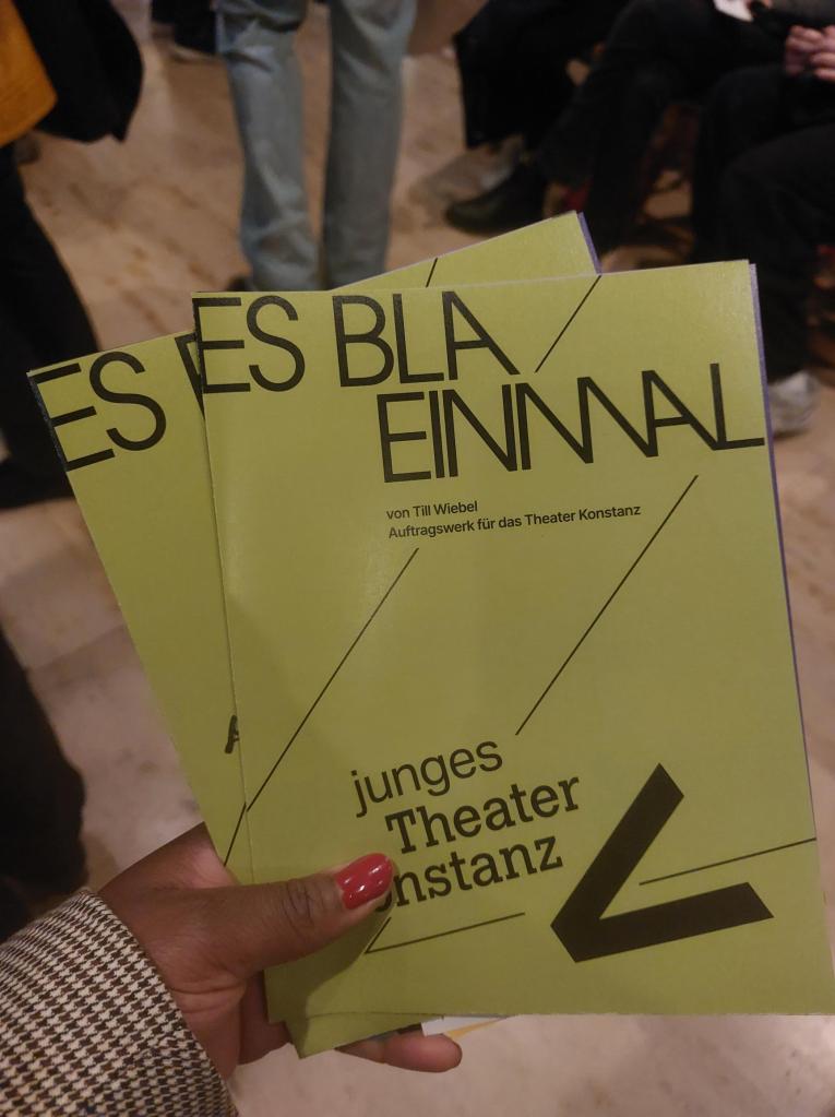 Gratulation an den Autor und Nah dran! -Stipendiaten Till Wiebel, an die Regie Paola Aguilera, das Ensemble bestehend aus Luise Harder, Ulrich Hoppe, Sabine Martin, der Dramaturgie Romana Lautner, Bühne & Kostüme Alexia Engl, Musikalische Leitung Thorsten Drücker und allen Mitwirkenden am Theater Konstanz für eine gelungene Uraufführung von „Es bla einmal“.
