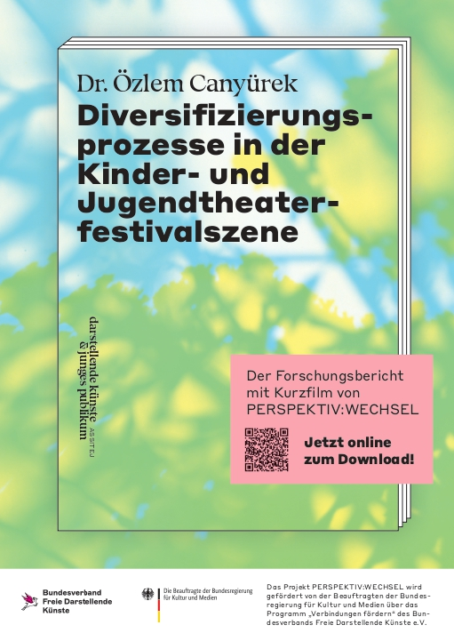 Die Kulturwissenschaftlerin Dr. Özlem Canyürek wurde 2022 vom ASSITEJ-Programm PERSPEKTIV:WECHSEL beauftragt, einen Forschungsbericht zum Thema Diversität in der freien Kinder- und Jugendtheaterszene zu schreiben. Ausgangspunkt aller Überlegungen und Analysen sollte das Archiv des Kinder- und Jugendtheaterzentrums in der Bundesrepublik Deutschland (KJTZ) sein. Hier werden seit Ende der 80er Jahre Bild-, Ton- und Schriftzeugnisse der Darstellenden Künste für junges Publikum zentral an einem Ort zusammengeführt. [1]