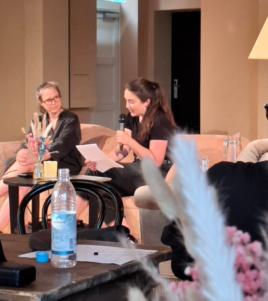Ich freute mich sehr auf ein Wiedersehen am 20. Juni mit Maria, Annalena und Anah, die ich während meiner Zeit im KJTZ mehrfach mit Texten oder mit ihrer Schreib- und Denkperspektive zu Veranstaltungen einladen oder bei Kooperationen kennenlernen konnte. Lena konnte nicht vor Ort in Berlin sein und war online zugeschaltet. Mit allen vier Autor*innen hatte ich schon anregende, kluge und schöne Gespräche übers Schreiben geführt und schätze alle sehr.